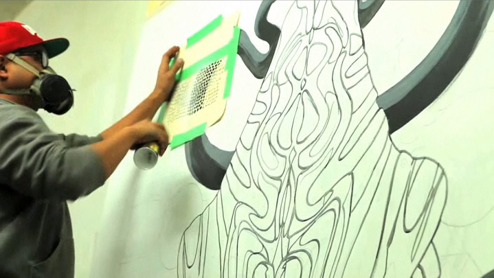 We had been talking with the guys over at HVW8 a couple of times about how we could fuse their particular graffiti style within some sort of animation project. This past december HVW8 collective was approached by Adidas to create three 8×8 paintings for print ads & then would be use afterwards as the backdrop during the “Adi-Hoop Competition”. That’s when we saw a great opportunity to play with and learn how to integrate animation into what would be a mini-documentary about the